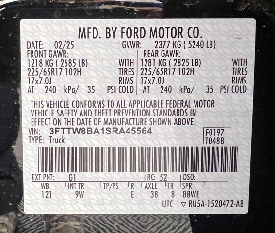 VIN: 3FTTW8BA1SRA45564