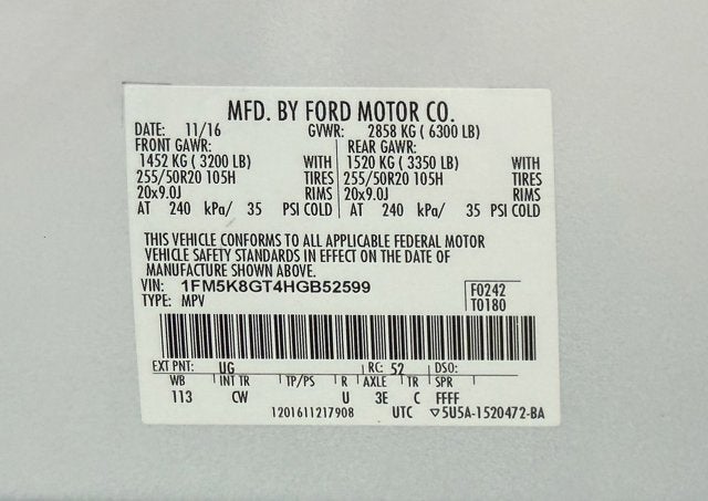 Priced Below J.D. Power Retail Value, Free Powertrain Warranty, Safety Package, Keyless Entry, Remote Start, Leather Seating, Heated and Cooled Seating, Memory Package, Navigation, Sunroof, Bluetooth® Capable, SYNC Radio, Backup Camera, 1-Owner, 4WD, 110V/400W AC Power Outlet, 20" Machined Aluminum w/Painted Pockets Wheels, 2nd Row Bucket Seats w/Power Assist Fold, Ambient Lighting, Auto-Dimming Driver's Sideview Mirror, BLIS Blind Spot Information System, BLIS Plus Inflatable Rear Safety Belts Package, Dual 2nd Row Smart Charging USB, Equipment Group 401A, Front 180 Degree Camera w/Split View & Washer, Inflatable Rear Seatbelts, Memory Feature, Navigation System, Perforated Leather Heated/Cooled Bucket Seats, Power Folding Sideview Mirrors w/Autofold, Power Tilt/Telescoping Steering Wheel, Power-Adjustable Pedals, Radio: Premium Sound from Sony, Radio: Sony Audio System w/Single-CD/MP3-Capable, Remote Control Front Windows, SYNC 3 Communications & Entertainment System, Twin Panel Moonroof, Universal Garage Door Opener.